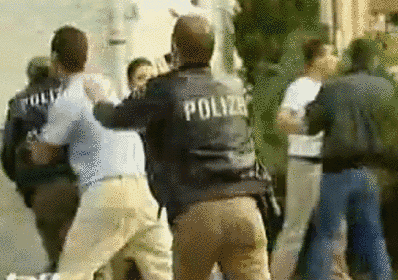 Türkische Mitbürger bei der Diskussion mit Polizeibeamten