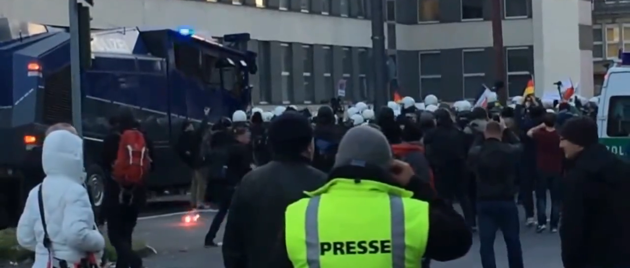 Mehrere Feuerwerkskörper, die als Vorwand zur Auflösung dienten, wurden offenbar von Provokateuren aus dem Bereich der Pressevertreter gezündet
