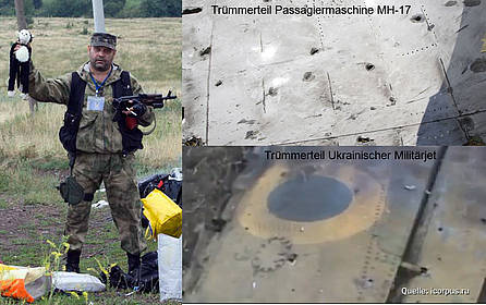 Vergleich der Trümmerteile einer offiziell abgeschossenen Militärmaschine und der Passagiermaschine: Die Einschußlöcher sind identisch, ebenso die Verantwortlichen: "Separatisten".