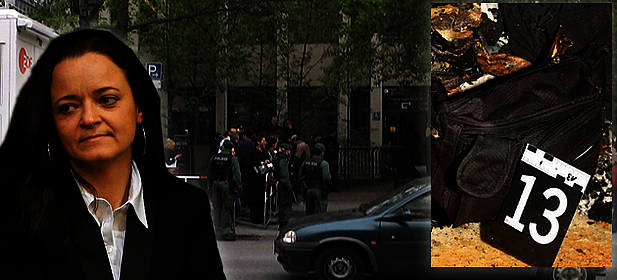 Zschäpe vor dem Münchener Landgericht - makellose Tasche mit Beweismitteln
